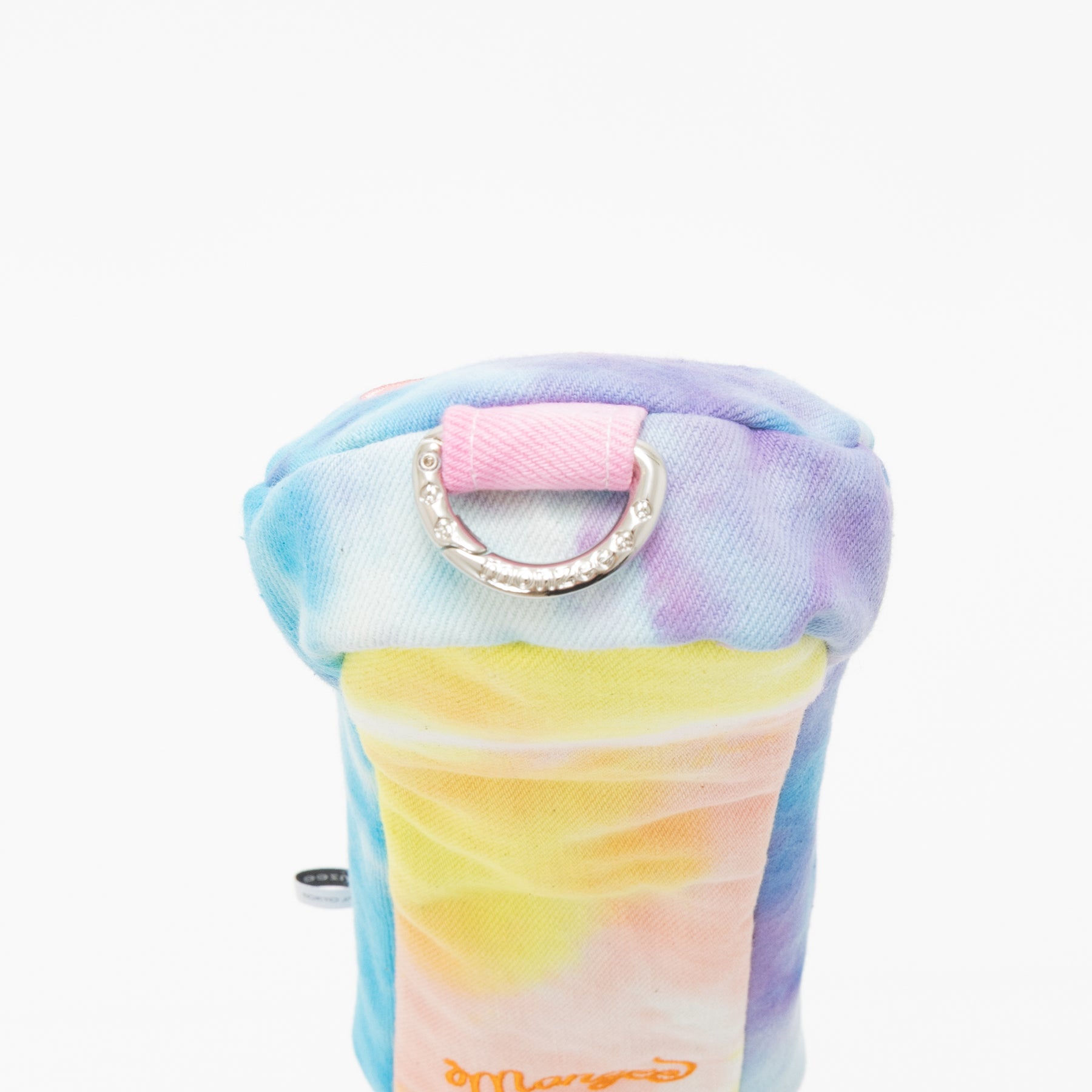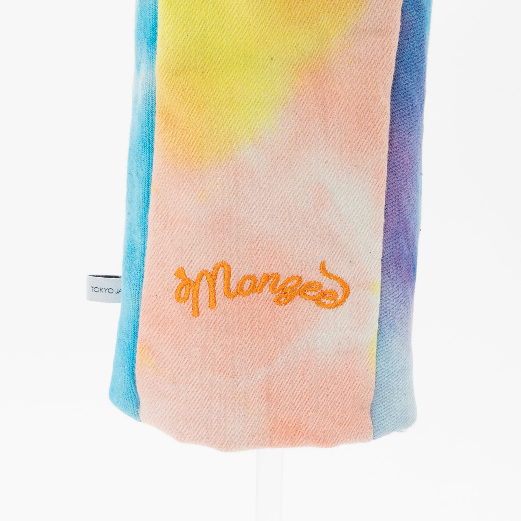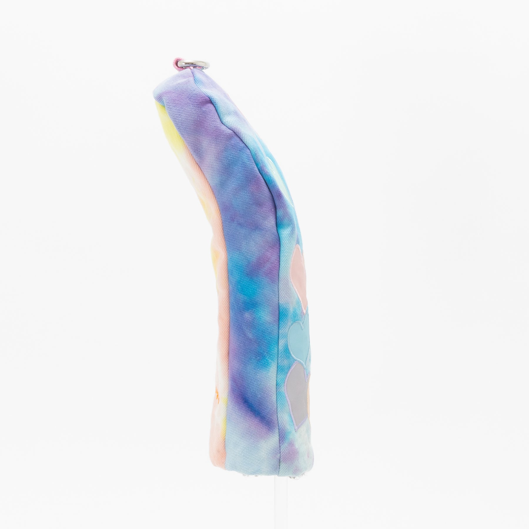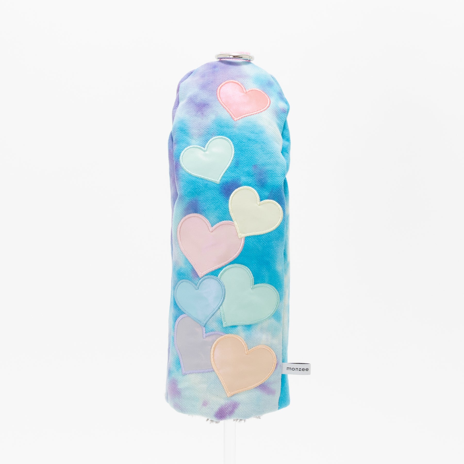 タイダイされた素材にカラフルリフレクター素材のハートアップリケ