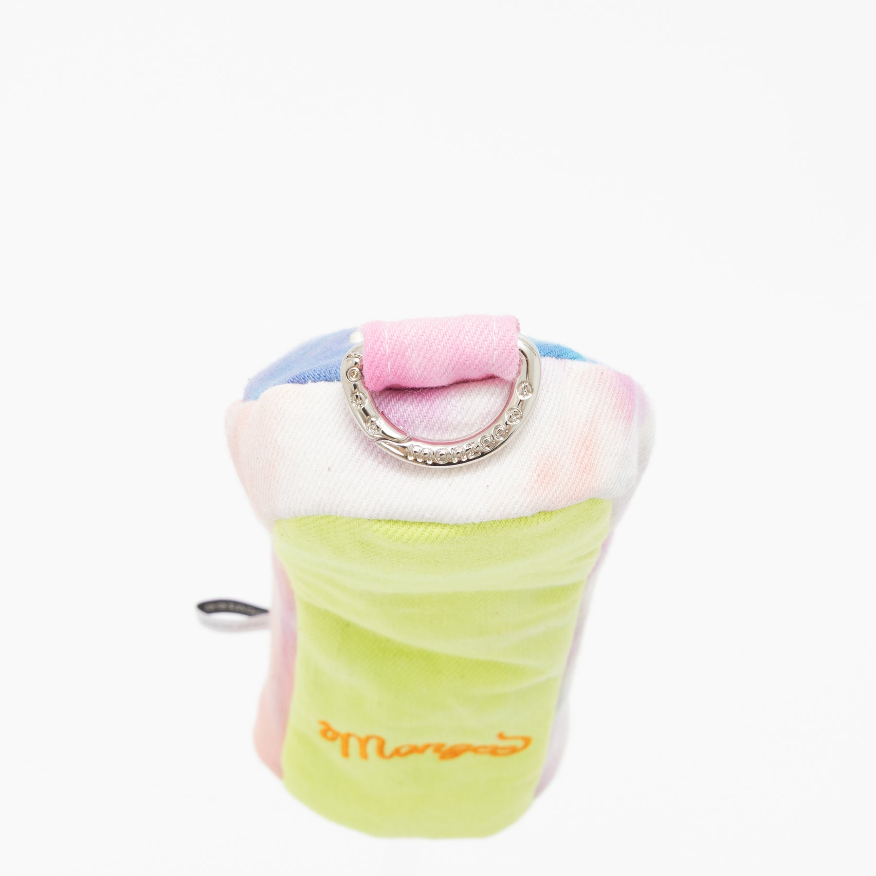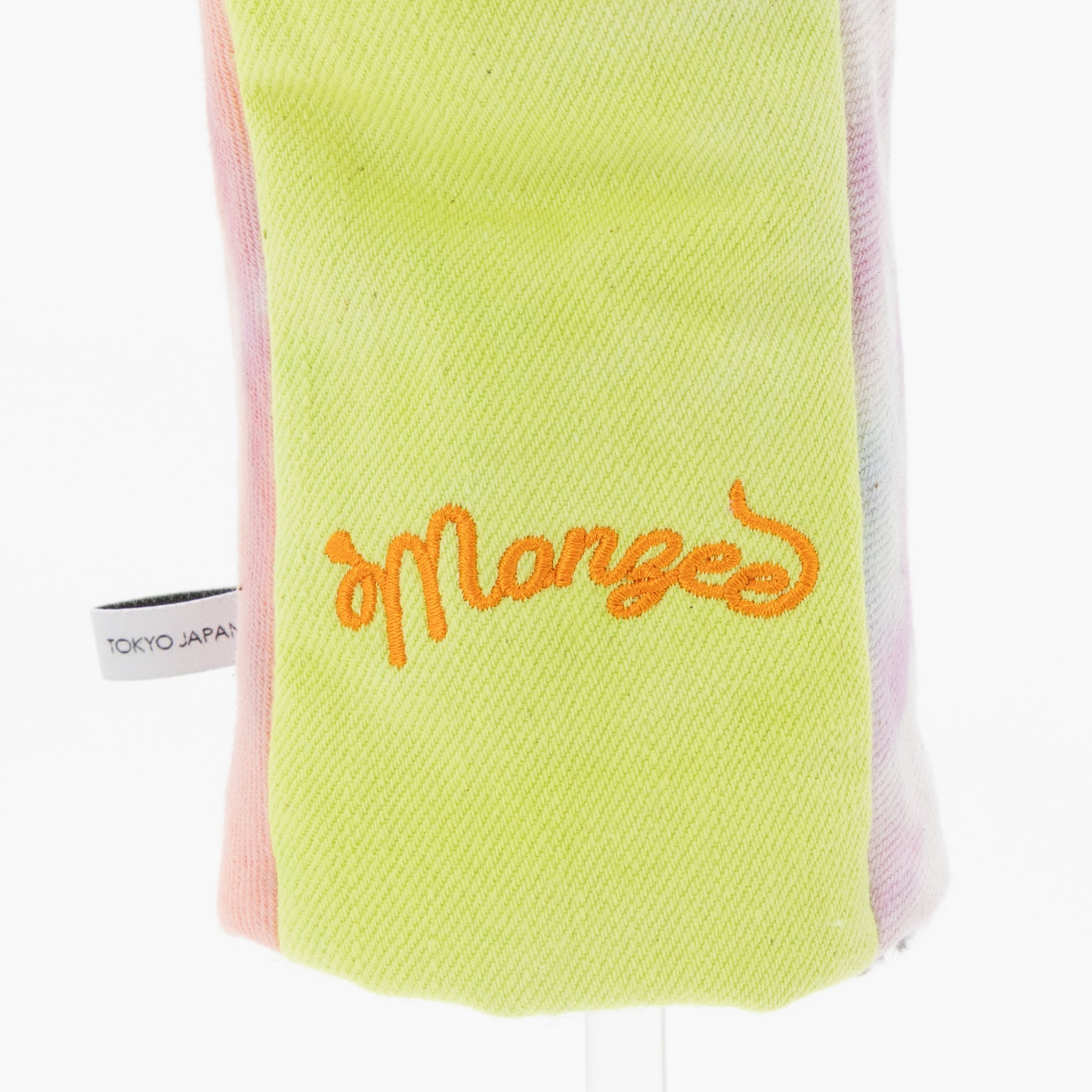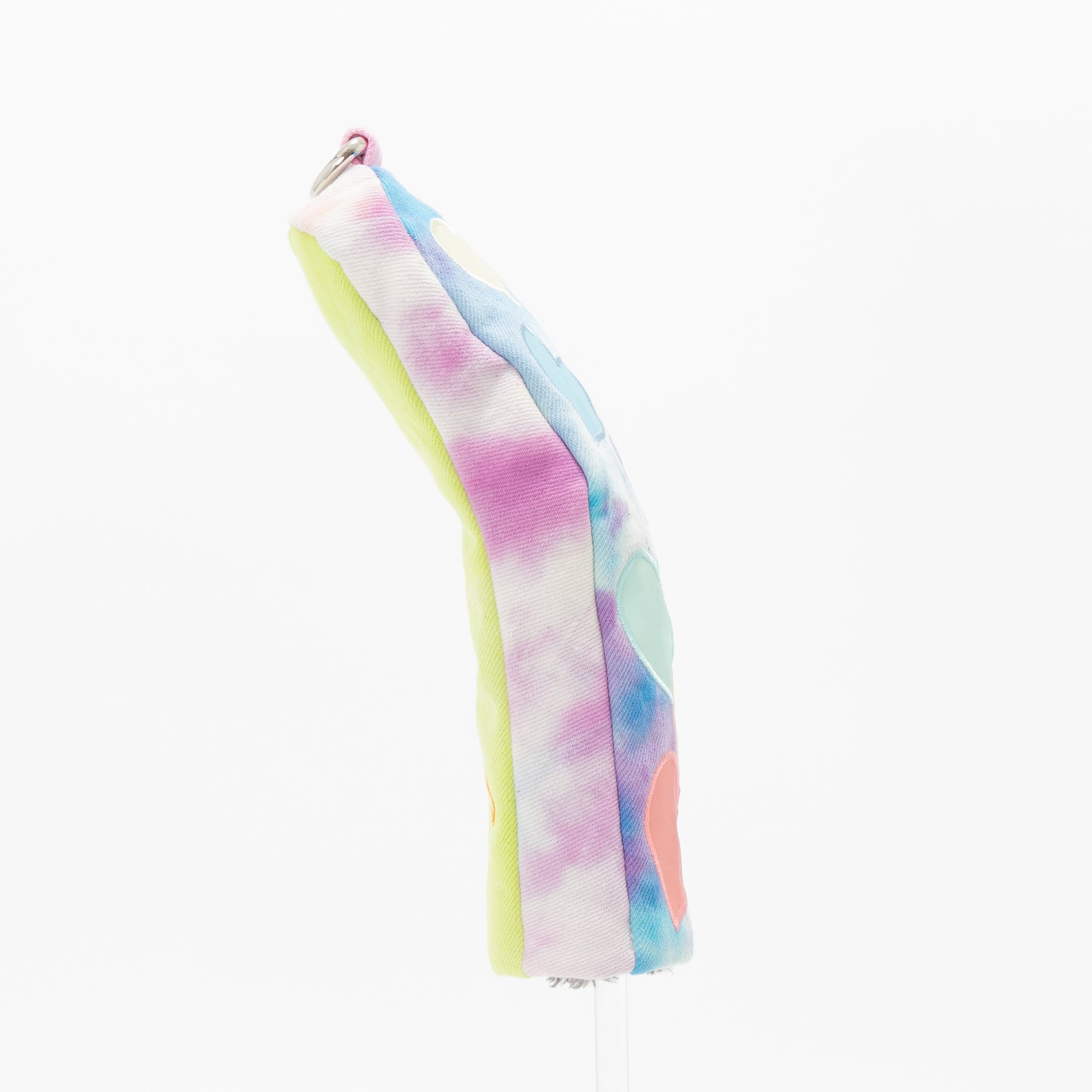 タイダイされた素材にカラフルリフレクター素材のハートアップリケ