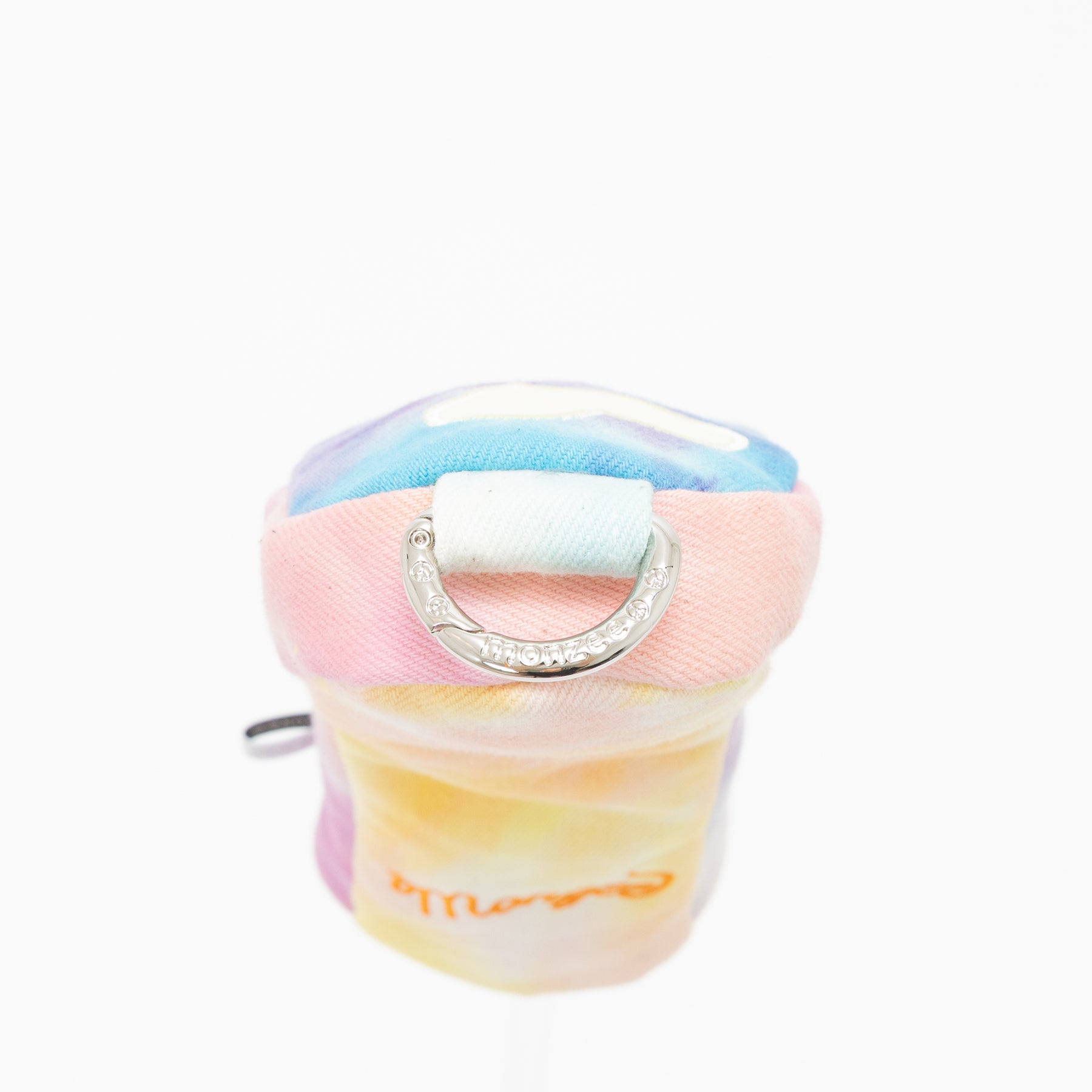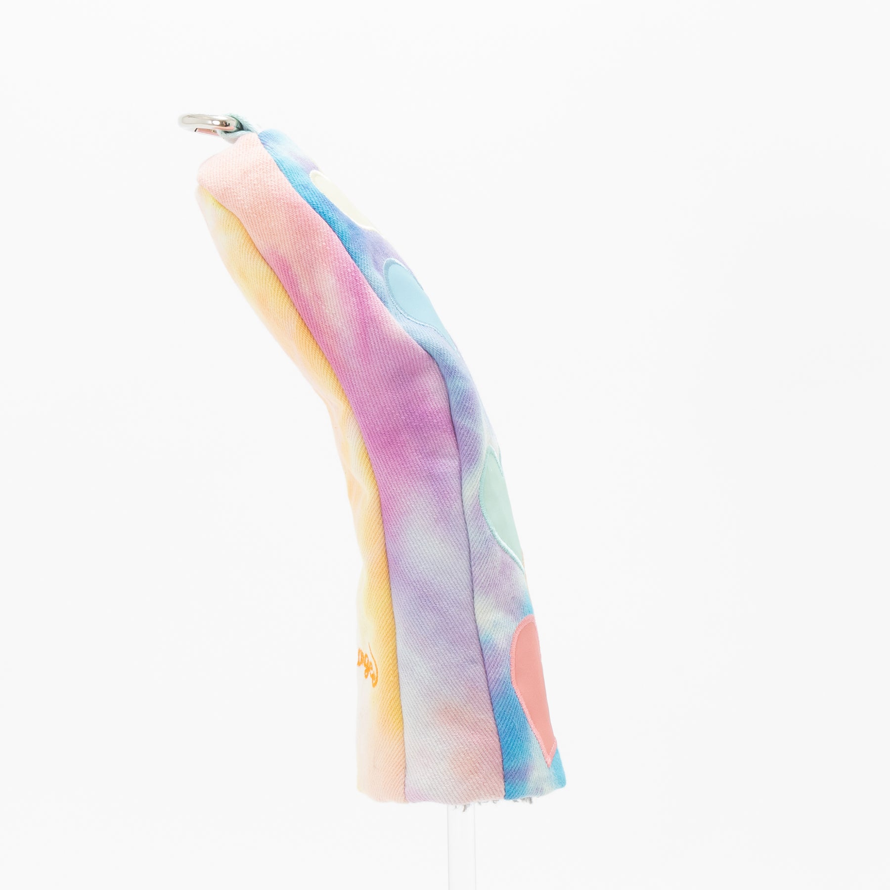 タイダイされた素材にカラフルリフレクター素材のハートアップリケ