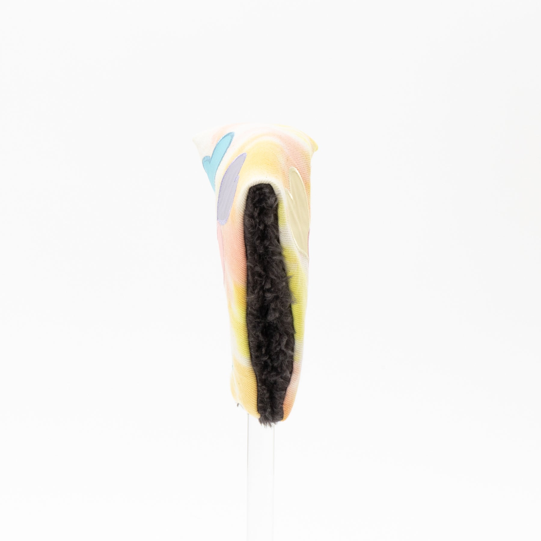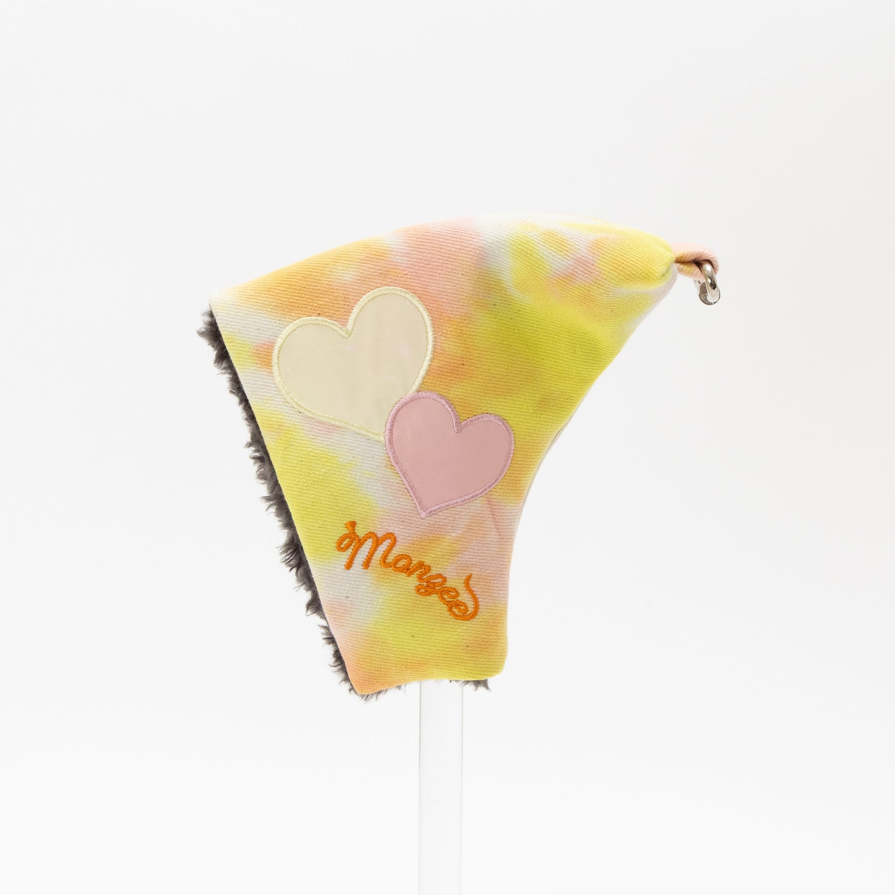 タイダイアーティストと共同制作したオリジナルタイダイ素材にハートのアップリケ
