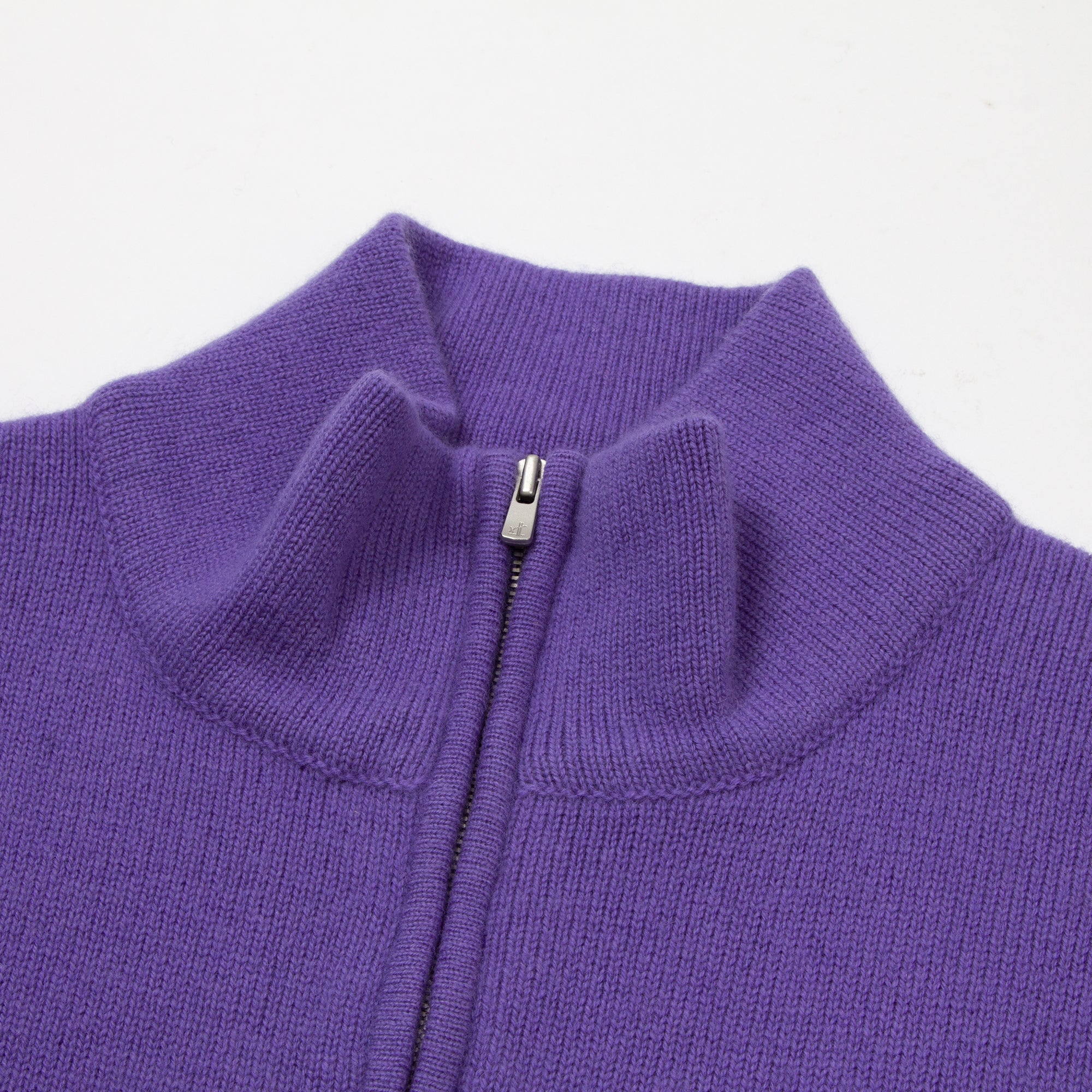 カシミヤミックスの高品質ジップアップニット。