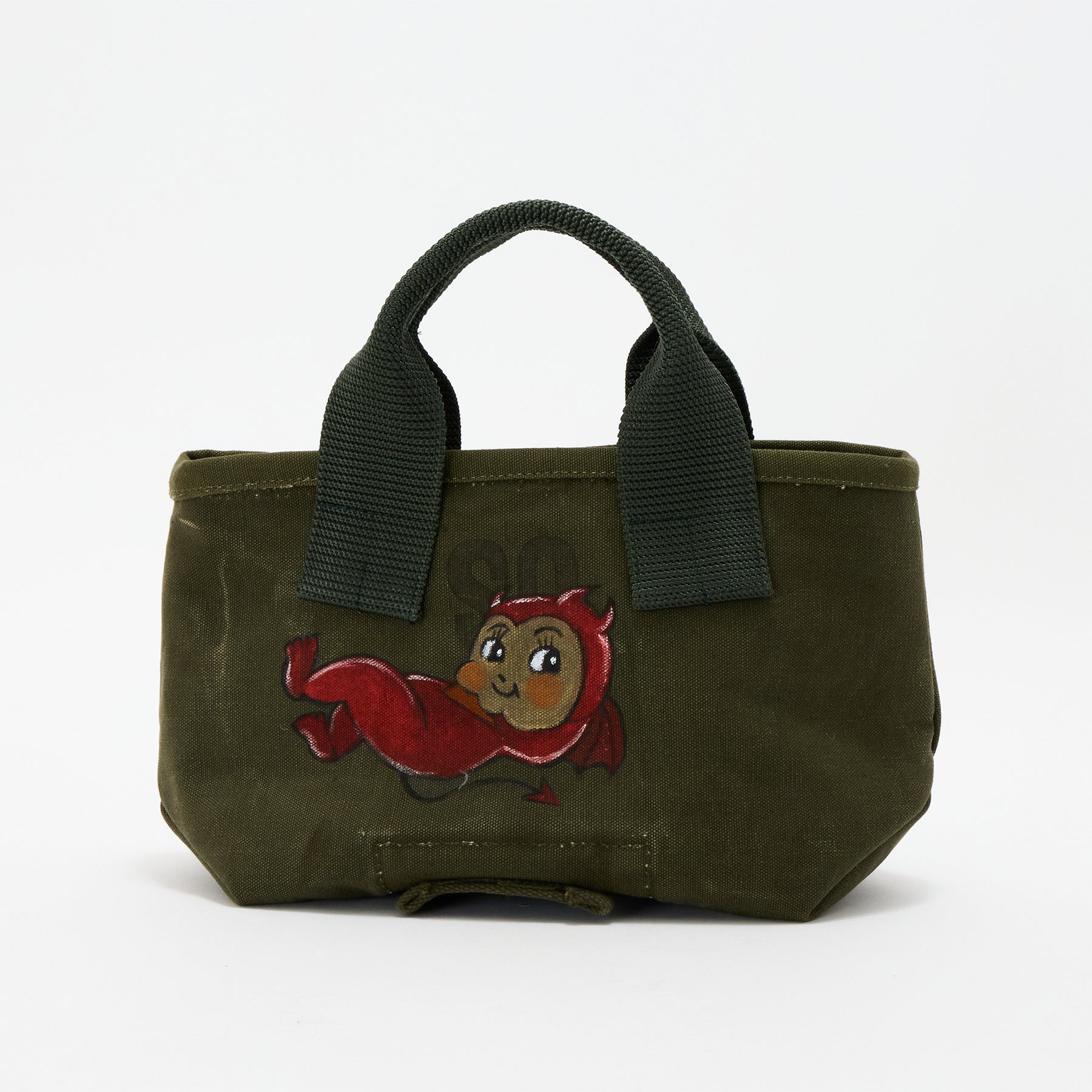 ヴィンテージミリタリー素材に落書き上部横幅:30cm 高さ:17.5cm底まち:13.5cm本体:日本製