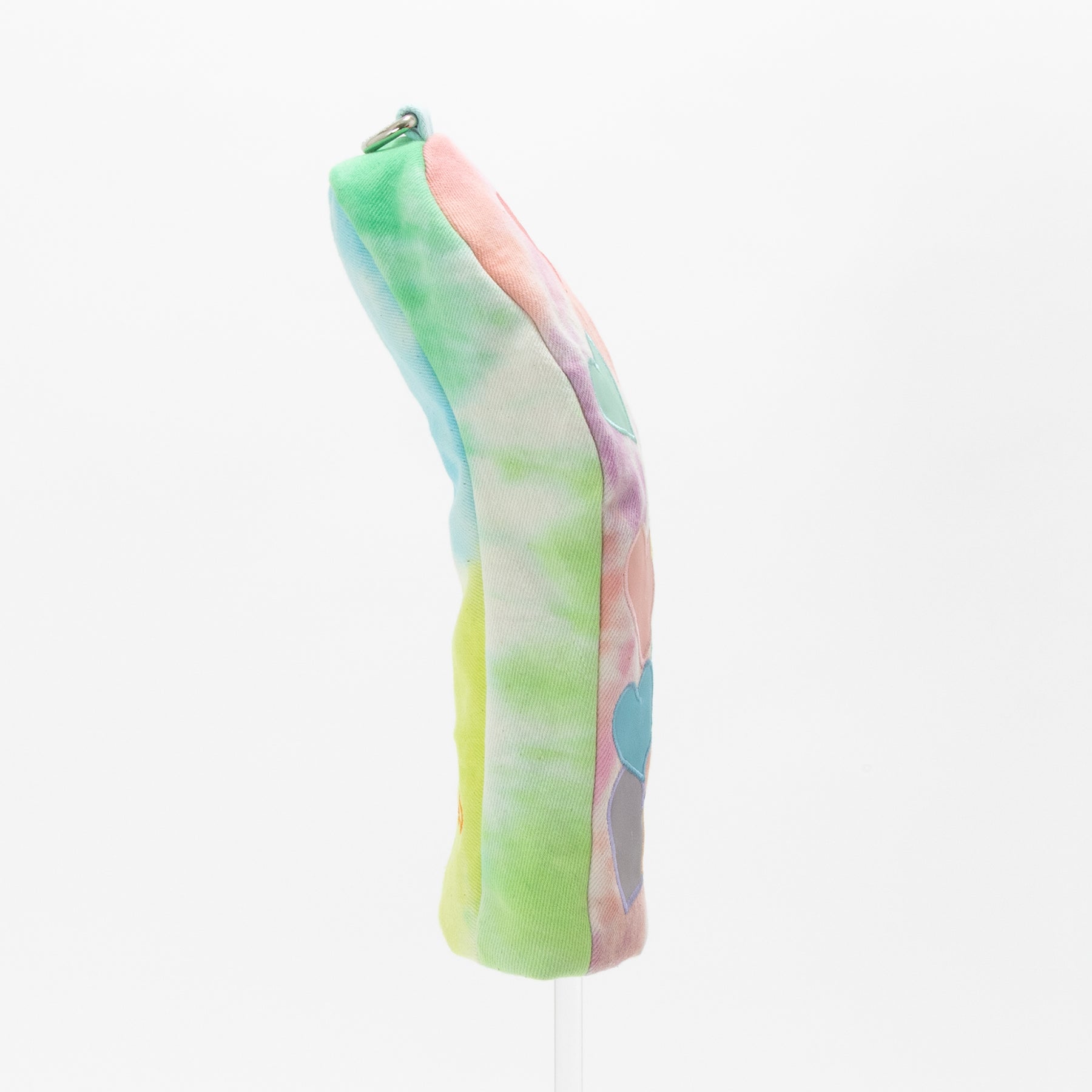 タイダイされた素材にカラフルリフレクター素材のハートアップリケ