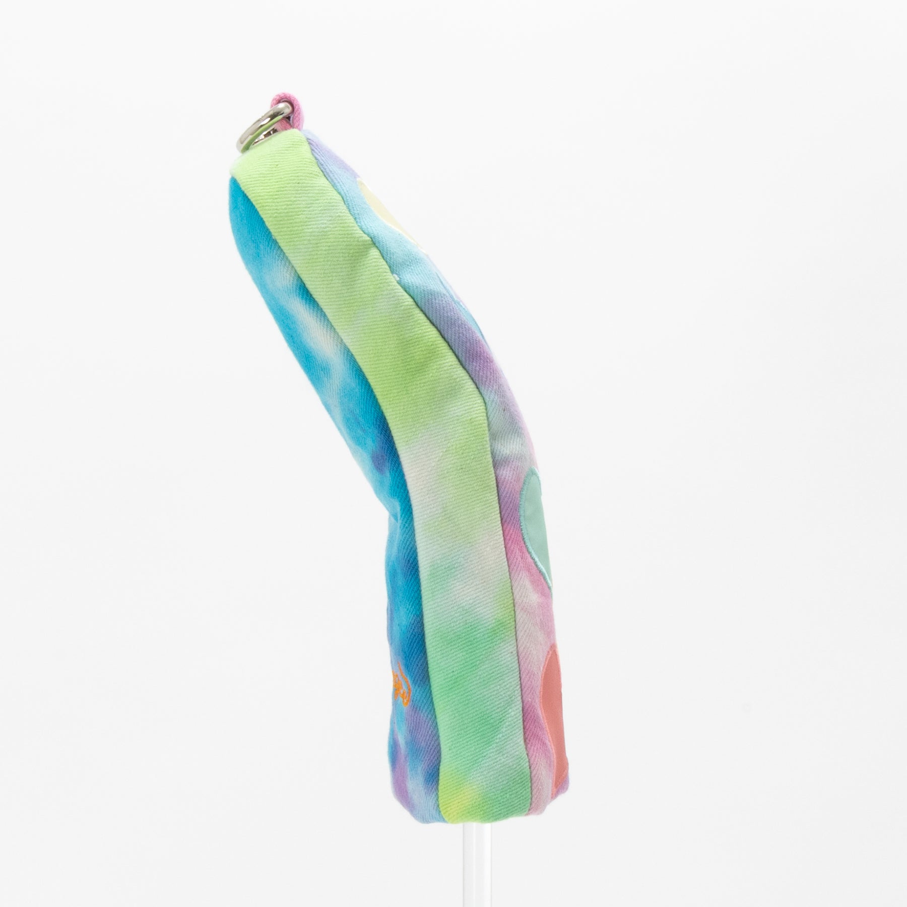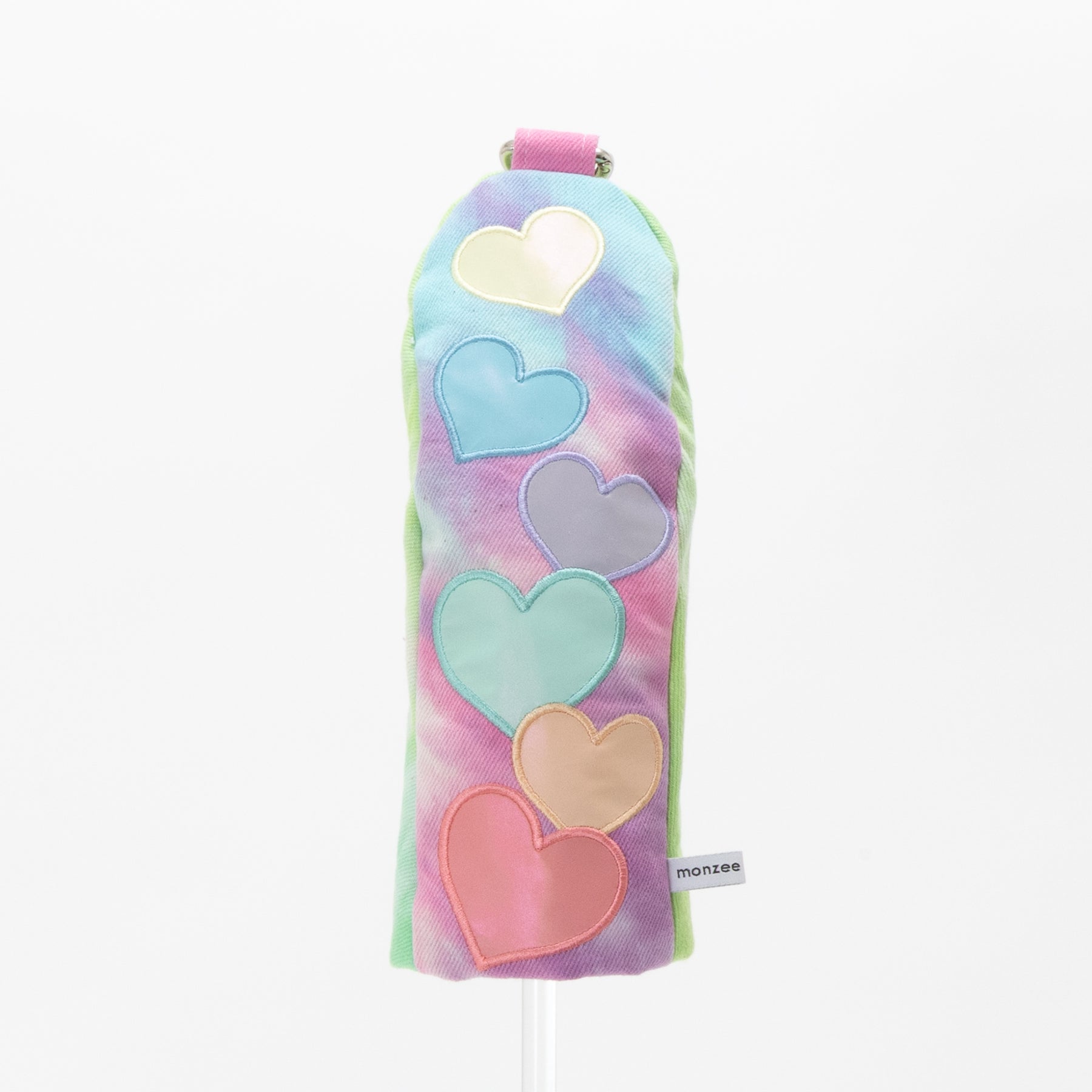 タイダイされた素材にカラフルリフレクター素材のハートアップリケ